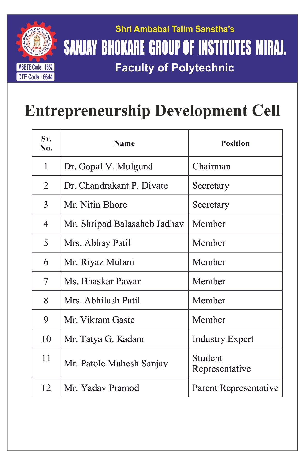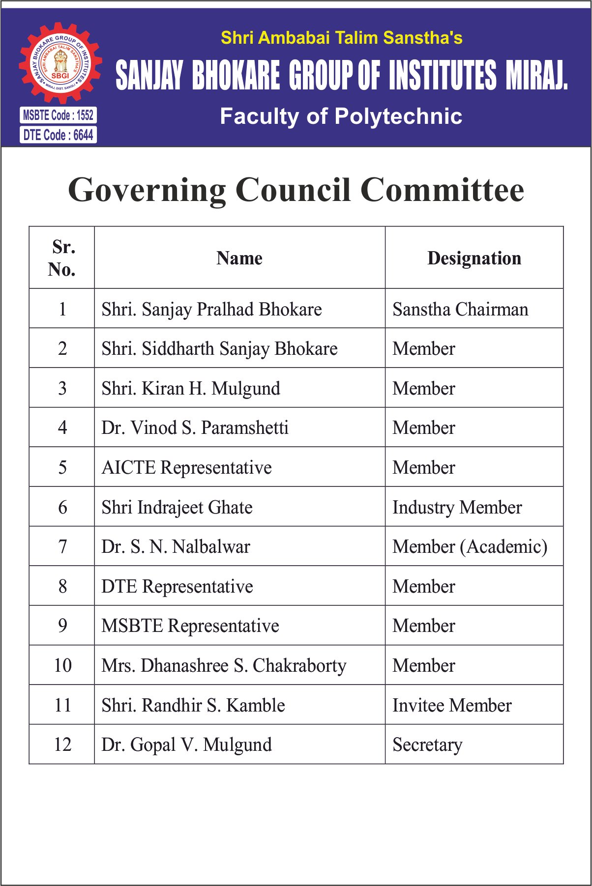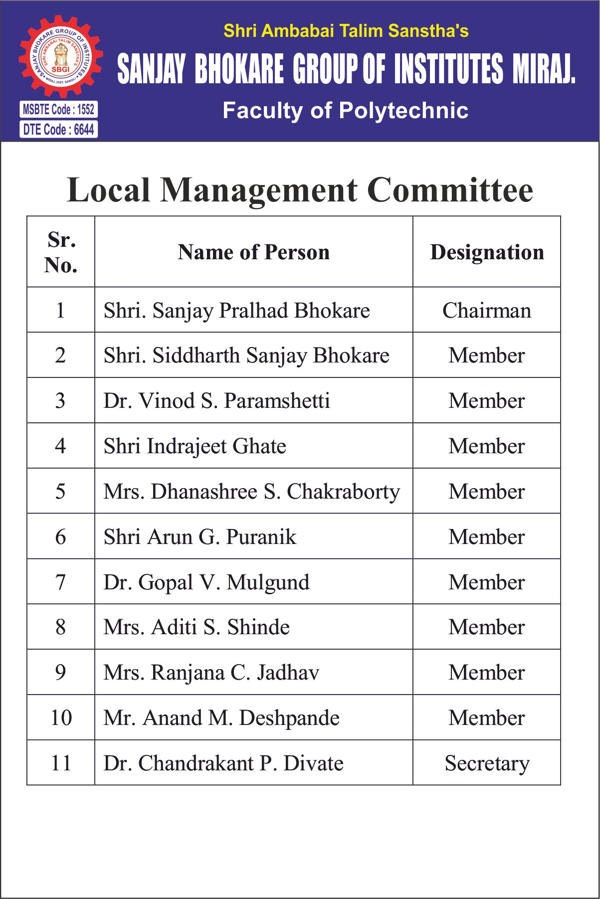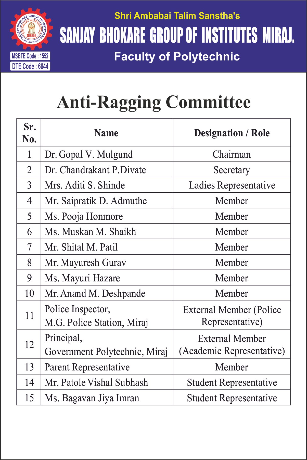 Approved By AICTE, New Delhi, Recognized by Government of Maharashtra and DTE & MSBTE,Mumbai