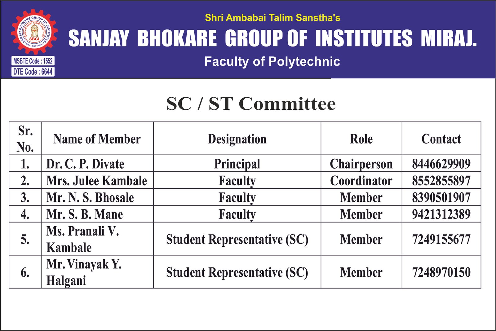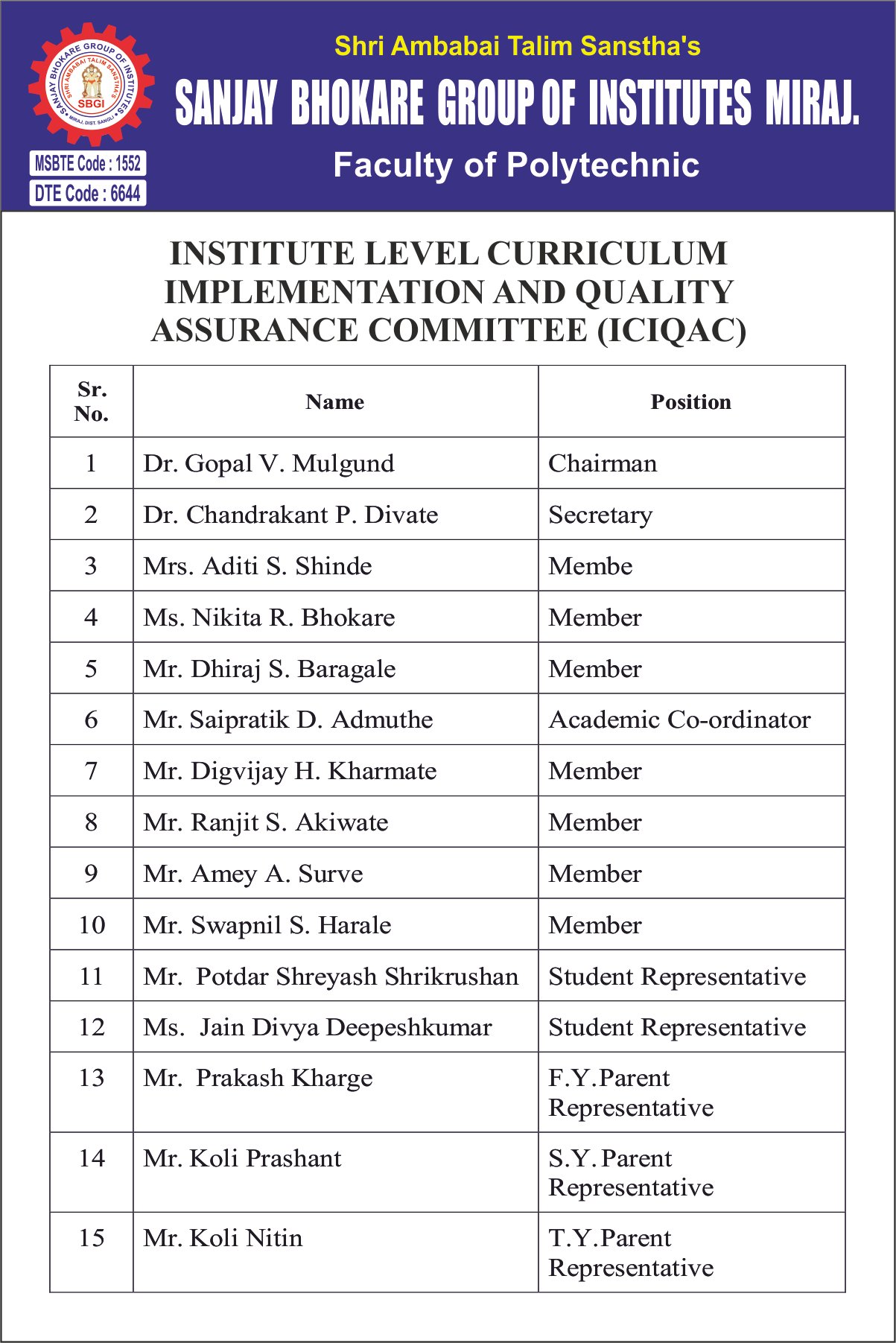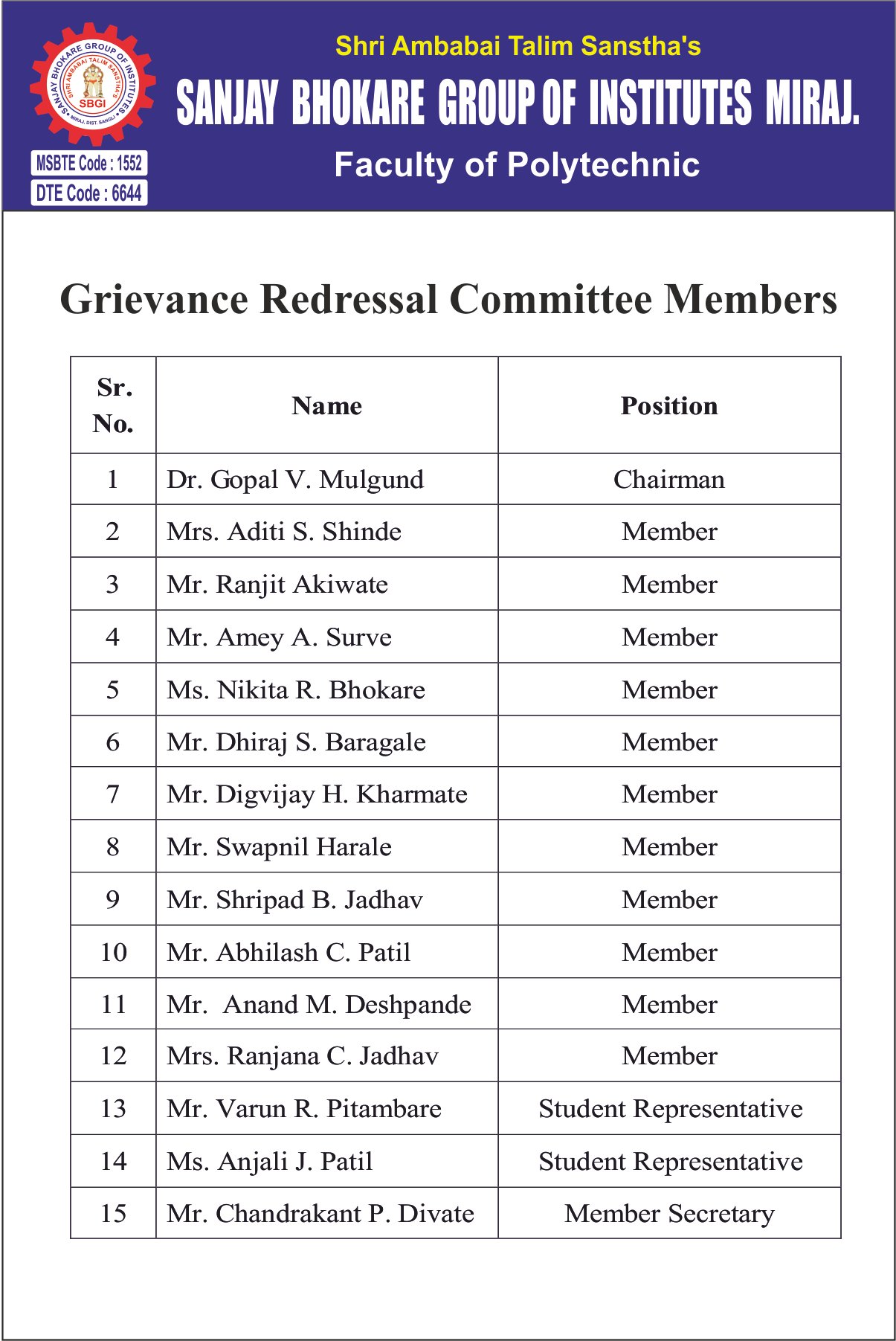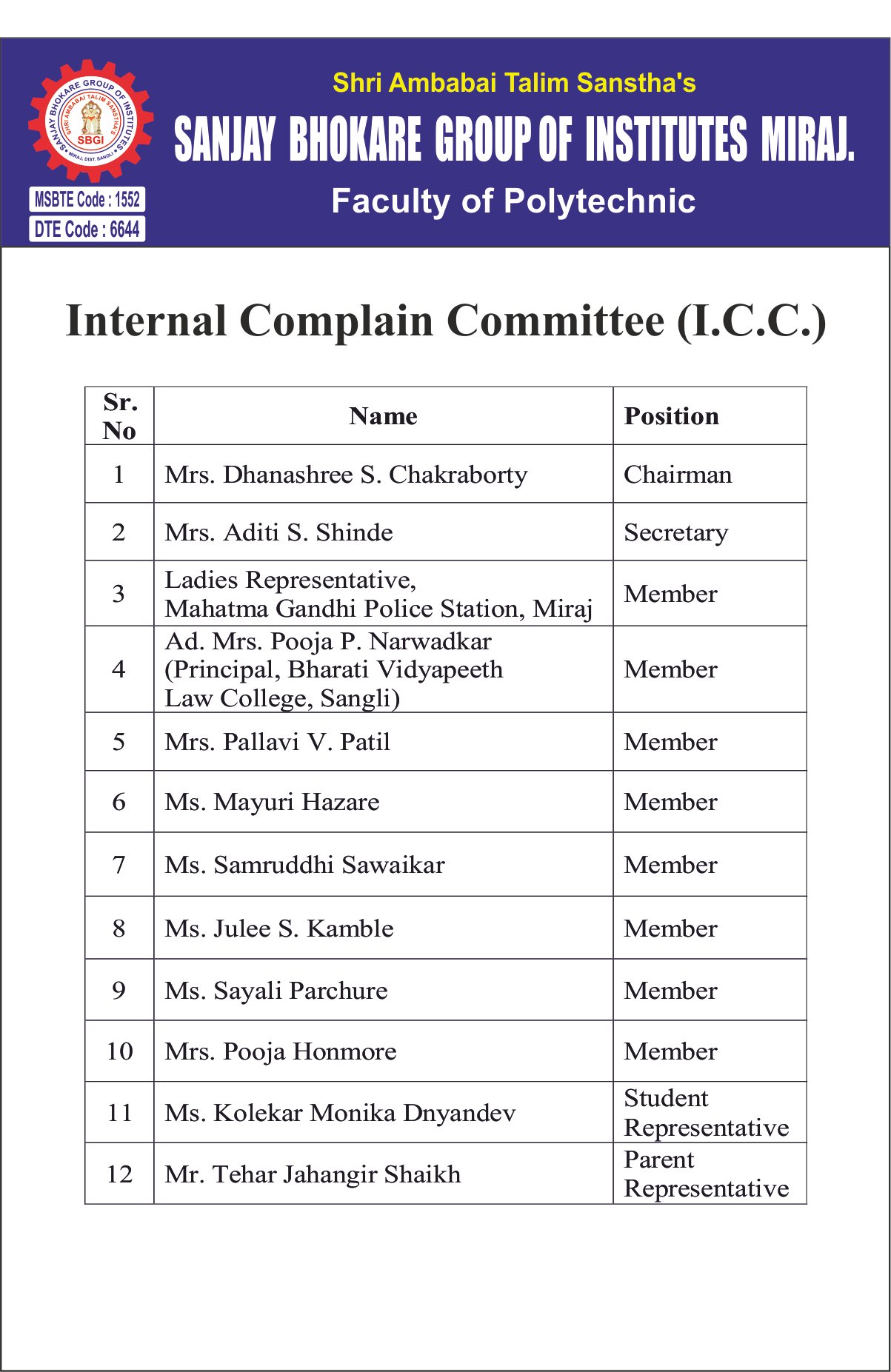 Approved By AICTE, New Delhi, Recognized by Government of Maharashtra and DTE & MSBTE,Mumbai